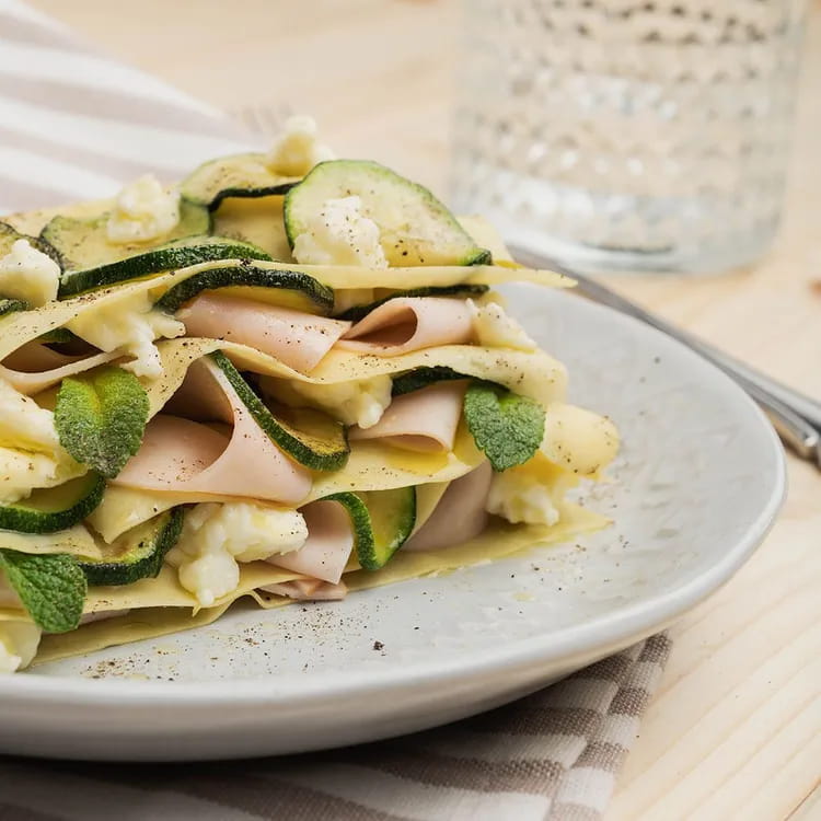 Wenn Sie noch schmackhaftere Lasagne möchten, fügen Sie zwischen den Schichten ein paar Scheiben Mozzarella hinzu.