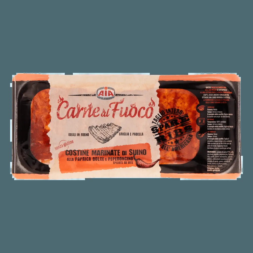 Meat on fire, marinated pork ribs with sweet paprika and artfully spiced chili, Spare Ribs - Whole American cut, Ideal in oven grill and pan, Gluten free, Artfully spiced