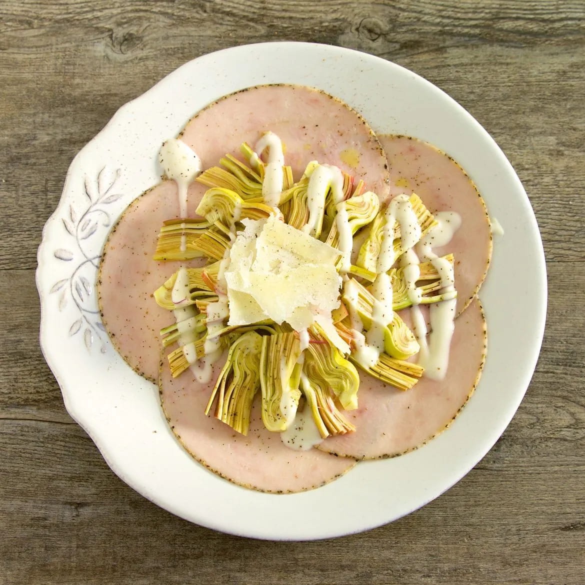 This is an unusual carpaccio that retains all the lightness of the traditional recipe, adding a touch of creativity and crunchiness given by the raw artichokes. Perfect for a summer lunch, perhaps by the sea, but also ideal to serve to friends during a buffet dinner, on the terrace or in the garden, the recipe for artichokes and Parmesan sauce on a bed of aeQuilibrium with black pepper will win you over.