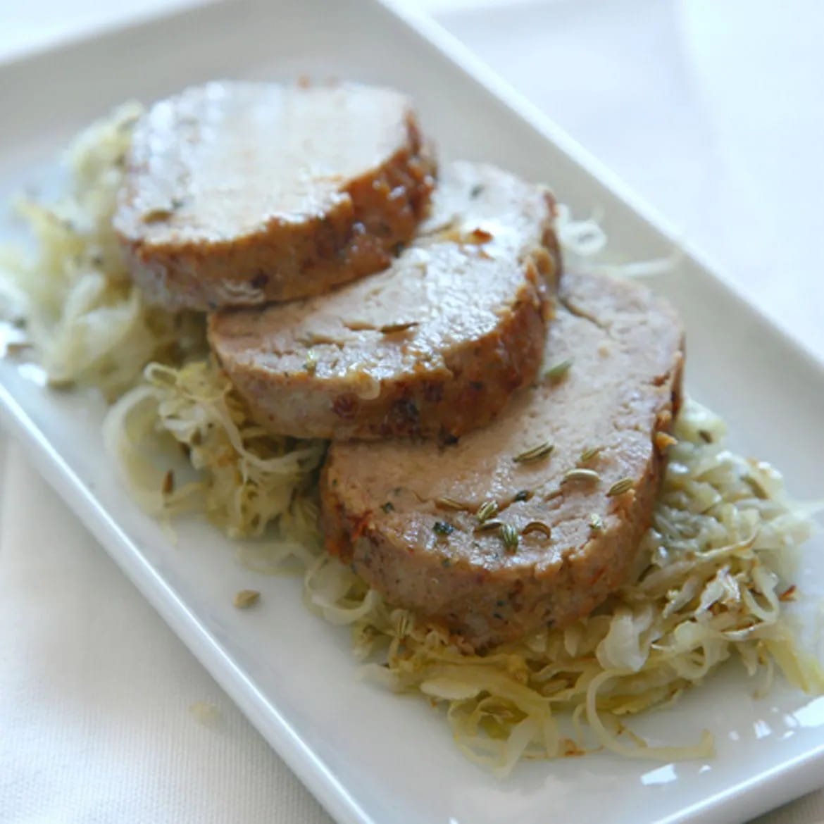 Classic BonRoll on a bed of fennel seed sauerkraut