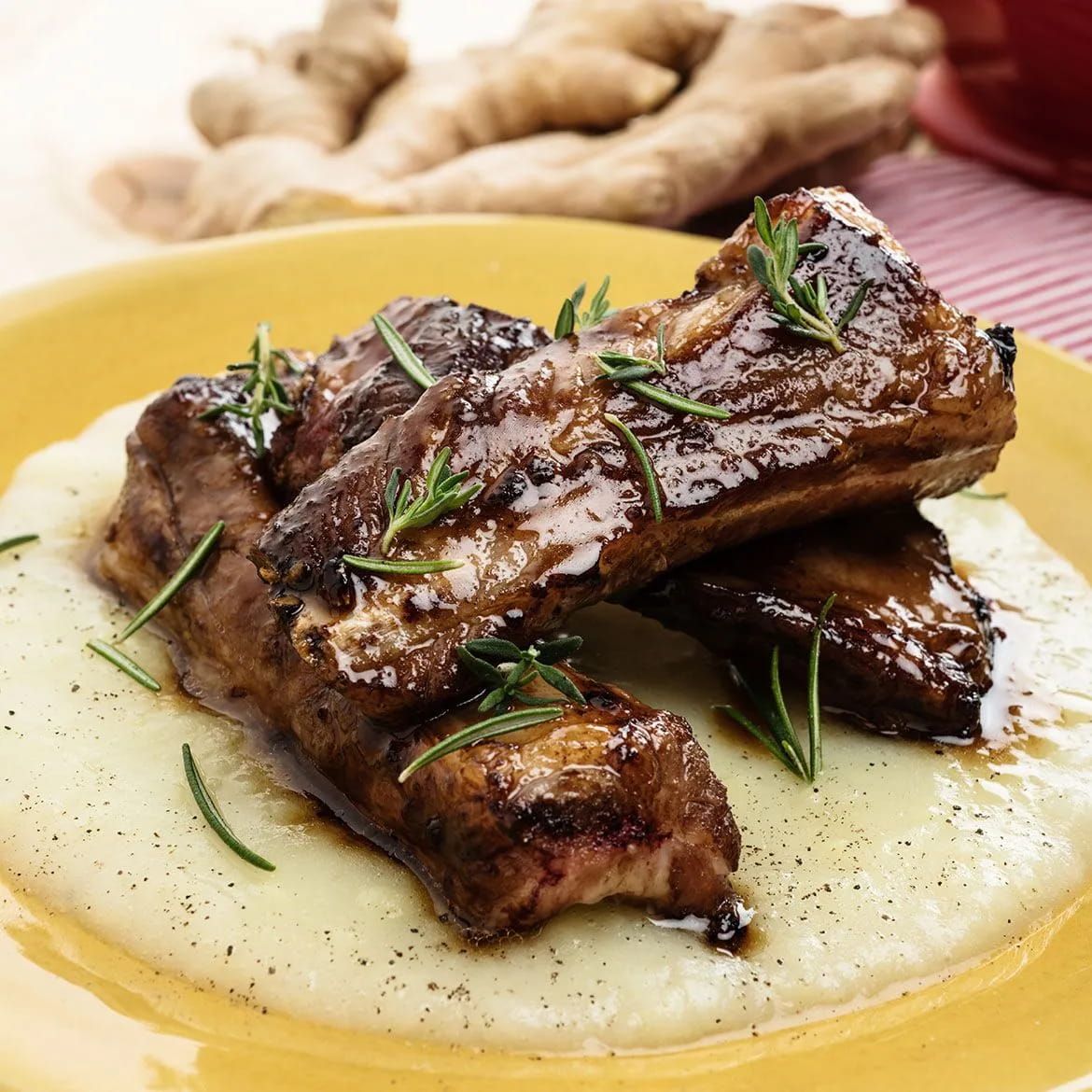 - Herb Ribs on Ginger Potato Cream