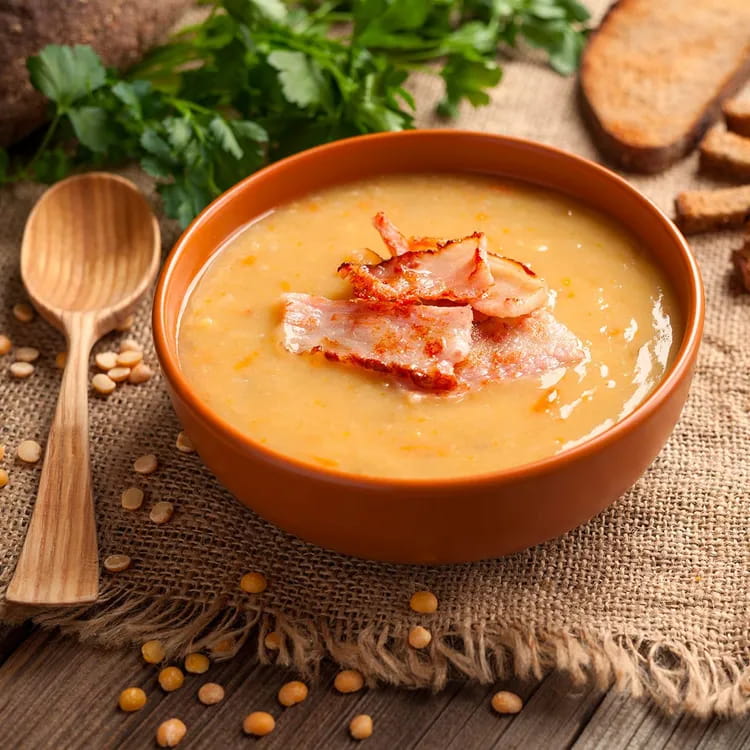 Adjust with salt and pepper and cook the soup for 20 minutes. After this time, blend everything with a mixer until you get a smooth and velvety cream. Alternatively, you can leave the ingredients whole. Serve the leek soup and decorate with the crispy bacon that you have slightly heated on the grill.