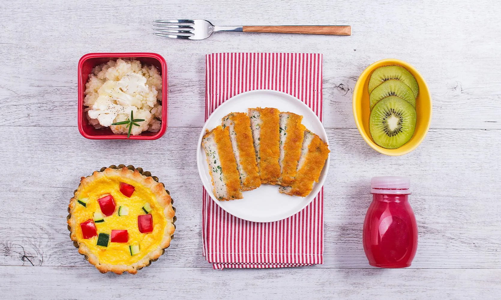 If you would never give up bringing your lunch box to the office for lunch break, but often ideas for a different dish are scarce, we have what you need! We want to propose a colorful lunch box, tasty and really complete based on Spinacine with cauliflower cream, mini vegetable savory pie, kiwi, red orange juice!