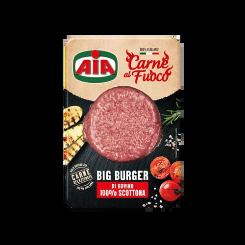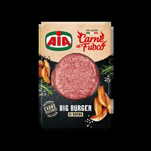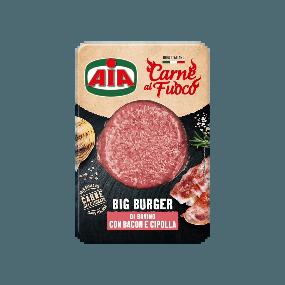 Il Big Burger AIA si arricchisce di gusto grazie all’aggiunta del bacon a cubetti e della cipolla, che lo rendono ancora più appetitoso e irresistibile. 100% carne selezionata da AIA.