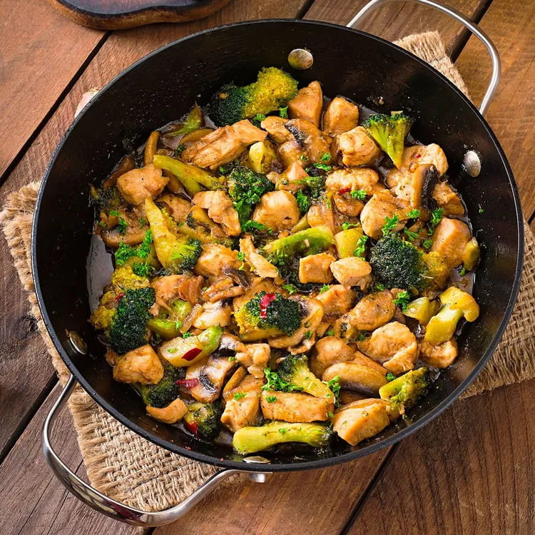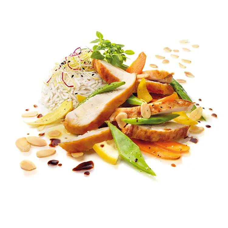 Scaldate 2 cucchiai di olio in una padella antiaderente e fate saltare la tagliata di pollo AIA per 5 minuti a fiamma viva. Lasciate intiepidire.