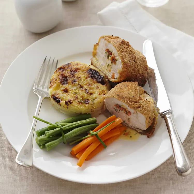 Pollo ripieno all'arancia e cipolline in agrodolce