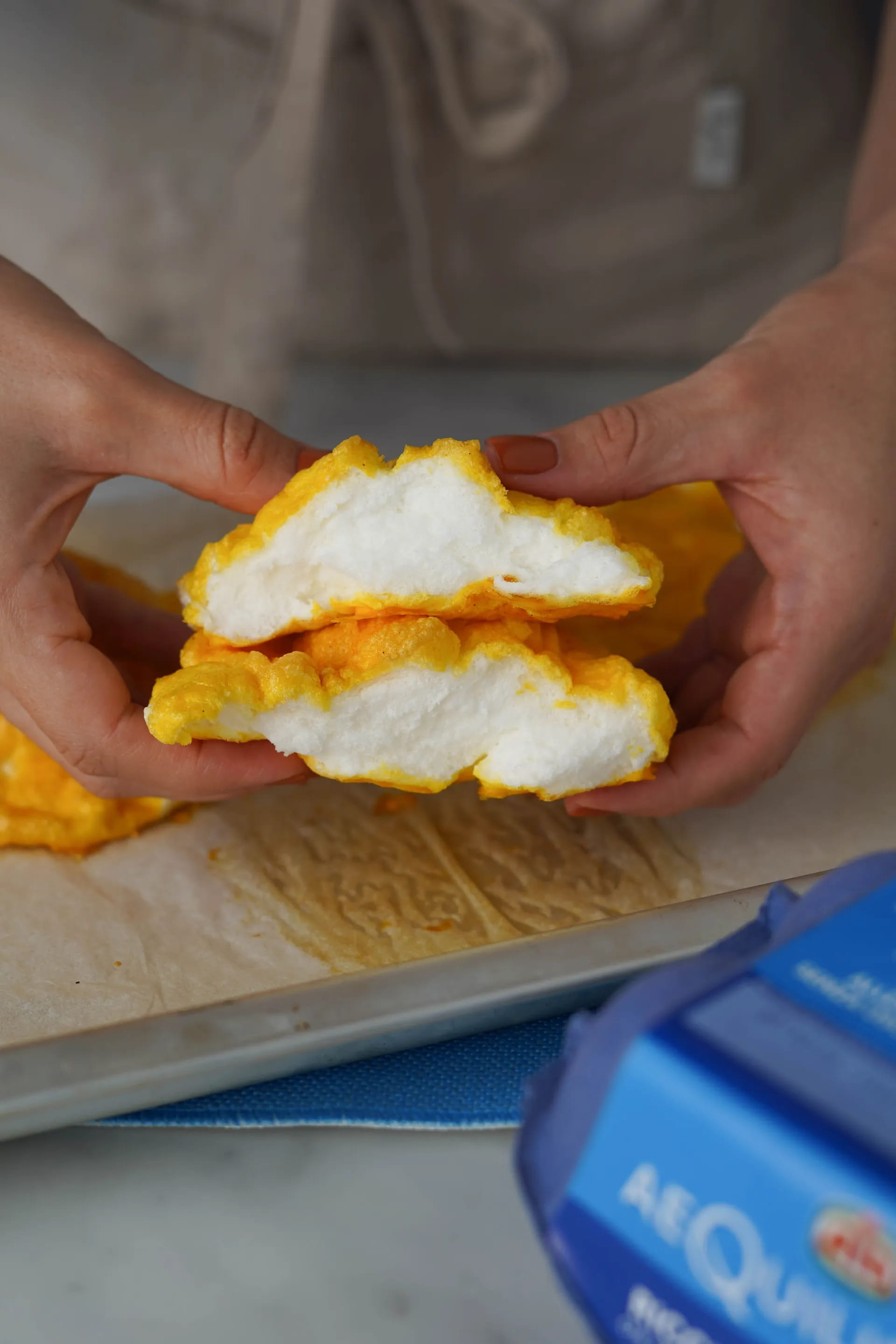 Prepara una teglia con carta forno e, con un pennello, fai dei cerchi con i tuorli della grandezza che preferisci.